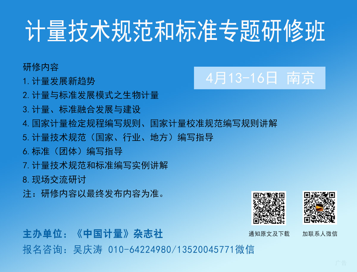 《中國(guó)計(jì)量》雜志社將于2025年4月13至16日在南京舉辦“計(jì)量技術(shù)規(guī)范和標(biāo)準(zhǔn)專(zhuān)題研修班”。
